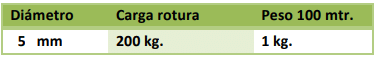 Trenzado exterior filamento polietileno en 16 h. Alma interior mecha textil paralela u otras fibras.