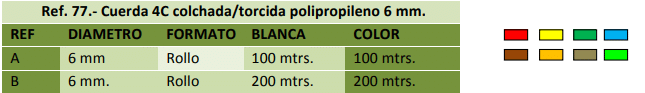 Multifilamento de polipropileno torcido en filática colchado, torcido a 4 cabos.