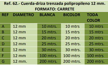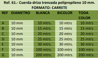 Efectos navales, náutica, cercados. Ganadería, bricolaje, camping, decoración, pancartas, etc.