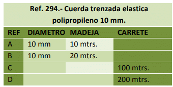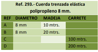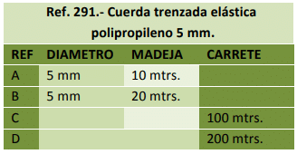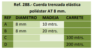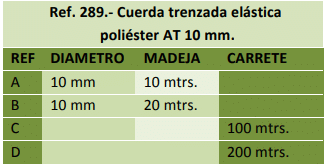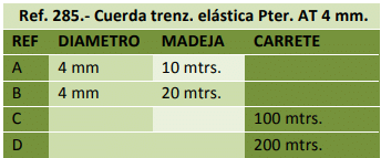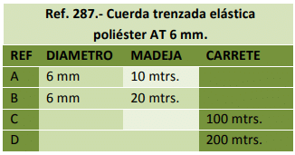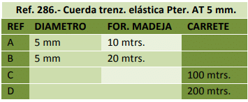 Filamento de goma elástica (látex) paralelos y agrupados por un trenzado de P.P. o Pter. A.T. revistiéndolos y formando una cuerda elástica.